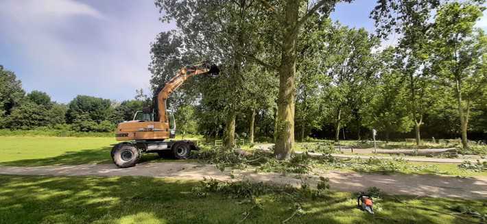 Pas voorlopig nog goed op voor loshangende takken in de bomen. Deze worden zo snel mogelijk verwijderd, maar dat heeft nog enkele dagen tijd nodig. Tot die tijd uitkijken dus!