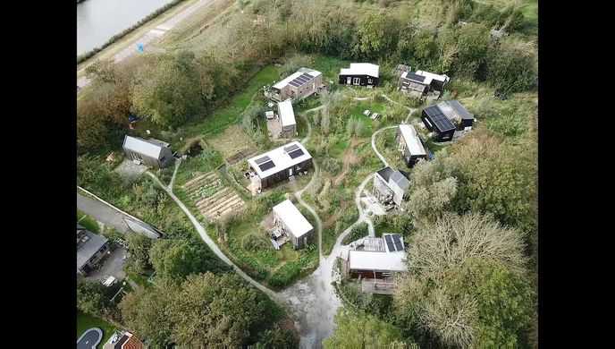 Naast het voedselbos de Groene Oase aan de Kanaaldijk, zijn 10 bio-based woningen gebouwd, met op het terrein veel aandacht voor biodiversiteit.