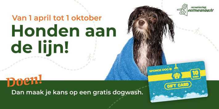 Van 1 april tot 1 oktober 2026 belonen we hondenbezitters die hun hond aan de lijn houden. De boswachter deelt kaarten uit voor een gratis wasbeurt bij de dogwash van Sponge Dog aan een selectie van bezoekers die zich aan deze regel houden.